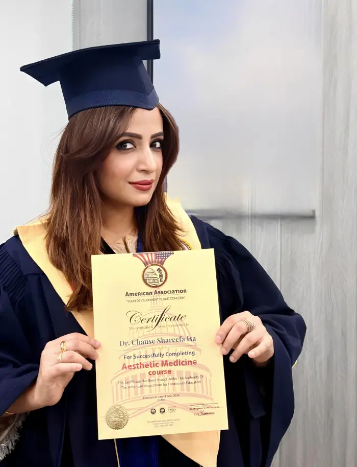 At Dr. Shareefa Isa Chause's Dermatology & Cosmetology, our vision is to redefine skincare as a journey towards self-confidence and well-being. We aspire to be a trusted beacon of expertise, guiding individuals towards optimal skin health through personalised dermatological care and cosmetic enhancements. Our vision is to inspire confidence and empower our patients to embrace their unique beauty, ensuring a positive impact on their lives.